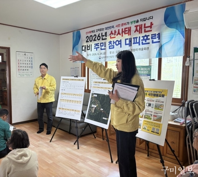 남부지방산림청 구미국유림관리소(소장 윤수일)는 여름철 집중호우 등으로 인한 산사태 재난에 대비하기 위해 오는 4월 24일 지역 주민(김천시 조마면 신왕리)을 대상으로 산사태 대피훈련을 실시한다고 밝혔다.