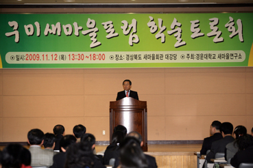 경운대학교 새마을연구소가 주관하는 이날 박람회 개막식 환영사에서 남유진 구미시장은 “새마을운동 40년 역사를 집대성한 대한민국새마을박람회를 지속적으로 개최하고, 대한민국 대표 브랜드로 자리 매김한 새마을운동을 한눈에 보고 느끼고 체험할 수 있는 새마을운동 테마공원을 주제에 맞게 조성할 방안을 찾기 위하여 개초되는 학술토론회에서 많은 의견을 개진하여 달라”고 하면서 새마을 종주도시의 수장으로서 당부한다. 학술토론회는 전 새마을 운동중앙회장을 역임하고 현재 단국대 명예교수인 김유혁교수가 “한국근대화와 새마을운동”이라는 주제로 기조강연을 하고, 제1부에는 ‘새마을운동테마공원 조성방안’에 대해 대구경북연구원 이동수 박사의 주제 발표를 하고 토론에는 대구대 관광학부 김광근 교수, 영남대 조경학과 김근호 교수, 경상북도 새마을회 김윤성 사무처장, 경운대 새마을연구소 연구부장 임재강 교수가 참여한다. 이어서 제2부에는‘새마을박람회 발전전략’이라는 주제로 경운대 새마을연구소 연구원 박영기 박사가 발표하고 경북대 시각정보디자인 조철희 교수, 계명대 미디어영상학부 서정남 교수, 대구경북연구원 오창균 박사, 구미시 새마을회 정대석 사무국장이 열띤 토론에 참여하게 된다. 이날 토론회는 새마을운동에 관심이 많은 전국의 새마을 학회회원, 도내새마을지도자, 새마을지도자대학 동창생은 물론 인근 주민 400여명이 참여하여 많은 의견을 개진할 것으로 보며 많이 시민이 참여하기를 기대하고 있다. 본 학술토론회에서 도출된 내용에 따라 향후 새마을운동테마공원조성 기본계획 수립에 반영할 것이며 또한 세계속에 공인 받는 새마을박람회로 거듭나는데 많은 도움이 될 것이다. |