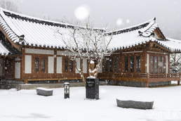 지난 24일 칠곡군에 봄철 눈이 내리면서 향사아트센터 일대가 저녁까지 하얗게 덮였다. 이날 고지대인 한티재에는 최대 13cm의 적설이 기록됐다. 이날 오전부터 내리기 시작한 눈은 오후와 저녁까지 이어졌다. 전통 한옥 양식의 기와지붕과 마당, 주변 수목 위로 눈이 쌓이며 평소와 다른 모습이 연출됐다. 검은 기와 위에 쌓인 눈은 건물의 곡선을 더욱 또렷하게 드러냈다. 향사아트센터는 박귀희 명창의 예술세계를 기리기 위해 조성된 문화시설이다. 박귀희 명창의 호 ‘향사’를 따 명명됐으며, 전시 공간과 공연장을 갖추고 있다. 봄철 눈이 이어지면서 방문객 수는 평소보다 줄었다. 다만 눈 덮인 전통 건축을 촬영하려는 주민들의 발길은 이어졌다. 시설 관계자는 “미끄럼 사고 예방을 위해 안전 점검을 실시했다”고 밝혔다. 24일 저녁까지 이어진 이번 눈은 향사아트센터에 이례적인 봄 설경을 남겼다.