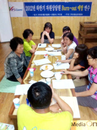 구미시 청소년지원센터에서는 2012. 8. 21(화), 22(수)상주 성주봉 자연휴양림에서 자원상담원 및 관계자 20여명이 참석한 가운데 '2012년 하반기 청소년 자원상담원 Burn-out 예방 연수'를 개최하였다.