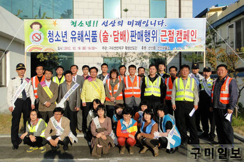 구미시 선산읍(읍장 황필섭)에서는 지난 10월 16일(화) 16시부터 선산읍 일원에서 학생선도단(회장 우정화) 및 단계여성회(회장 이경자), 선산파출소, 선산고 교사 등 50여명이 참석한 가운데 청소년 유해환경 합동 지도·단속을 실시하였다.