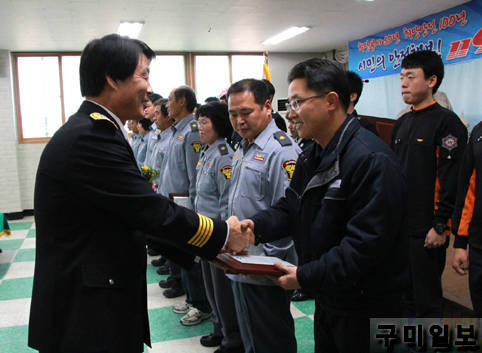 이 날 행사에서는 국민의 안전문화 증진에 기여하고, 화재 및 구조·구급 등 헌신적인 소방활동을 통하여 국민의 생명과 재산보호에 공이 큰 소방공무원 및 119소년단, 기타 소방관계자들 52명이 행정안전부장관, 소방방재청장, 경상북도지사, 국회의원, 구미시장, 소방서장 표창을 수상했다.