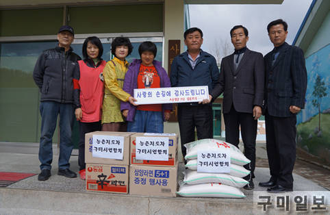 농촌지도자구미시연합회에서는 도개면 사랑의 쉼터와 불우가정 2가구에 쌀, 라면 등 100여만원 상담의 물품을 전달하고 격려하였다.