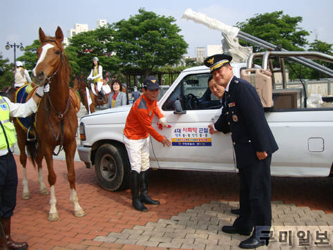 5. 20(월) 10:00 구미시 송정동 분수공원에서 구미경찰서 경비교통과장 여성청소년과장, 교통기마경찰대 회원 등이 참석하여 성공을 기원하며 출정식을 가지고 힘찬 발걸음을 내디뎠다.