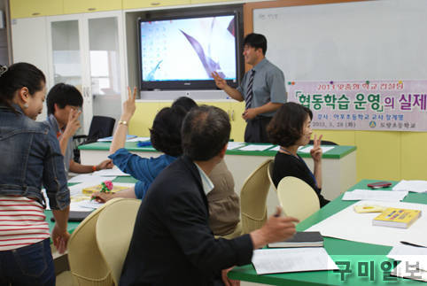 이날 학교 컨설팅의 주제는 ‘협동학습 운영의 실제’(강사:장계영 선생님, 아포초등학교)로 본교 선생님들께서 직접 선정한 외부 강사를 초빙하여 주제 강연을 듣고 실습을 해보는 시간도 가졌다.
