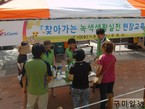 구미시(시장 남유진)에서는 7월 10일부터 9월까지 총 20회에 걸쳐 아파트를 순회하며 1일 두시간씩 1,000여명을 대상으로 '찾아가는 녹색생활실천 현장교육'을 실시한다.