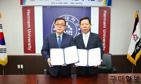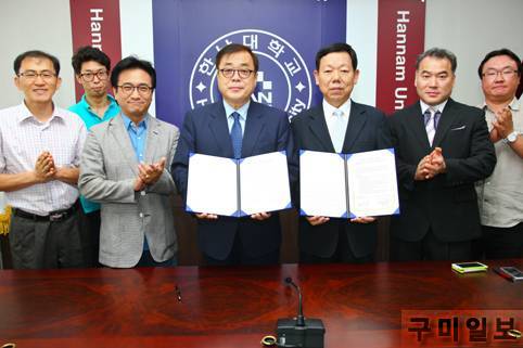 ▲영상분야 진출을 희망하는 한남대학교 학생들을 적극 지원하고 산학 간 프로젝트 수행과 연구개발 및 교육과정 개발에 공동 참여한다. 등 상호 효율적인 업무 추진을 위해 정보 공유 등 주요 내용 실현에 함께 힘을 모을 것을 약속했다.