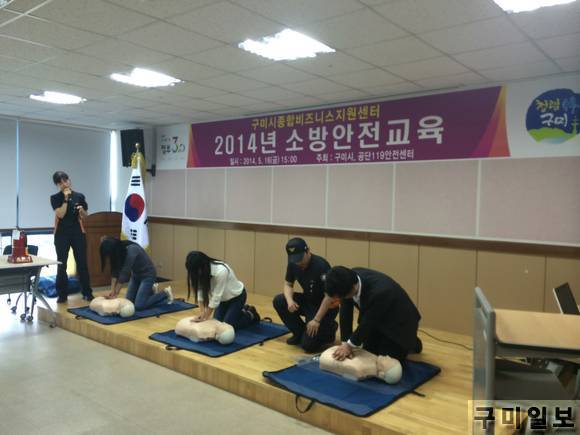 구미시종합비즈니스지원센터(이하 비즈니스지원센터)에서는 5월 16일(금) 비즈니스지원센터 입주기관 및 기업 근로자 30여명이 참여한 가운데 소방안전교육을 실시하였다.