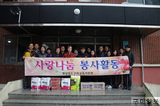 경상북도구미교육지원청(교육장 김정숙) 교육지원과 직원 25명은 11월 16일(월)에 구미시 신시로에 위치한 사회복지법인 ⌜삼성원⌟을 방문하여 봉사활동을 실시하였다.