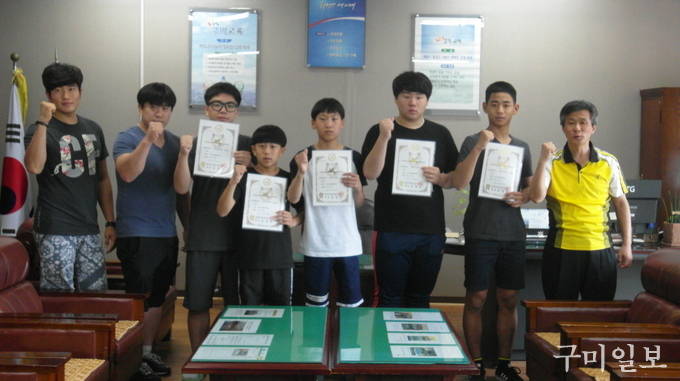 구미신평중학교(교장 최병재) 레슬링부가 7월 23일부터 24일까지 강원도 양구에서 열린 ‘제42회 대통령기 전국 시도대항 레슬링대회’에서 금메달 1개(그레꼬로만형 58kg_3학년 박성민, 청소년 국가대표), 은메달 3개(그레꼬로만형 100kg_3학년 이민기, 42kg_2학년 이준욱, 39kg_2학년 이동환), 동메달 1개(그레꼬로만형 69kg_3학년 한국현)를 획득하였다. 이번에 획득한 메달은 구미신평중학교가 각종 모든 전국대회를 통틀어 획득한 역대 최고 기록을 갱신한 것이어서 그 의미가 더 크다.