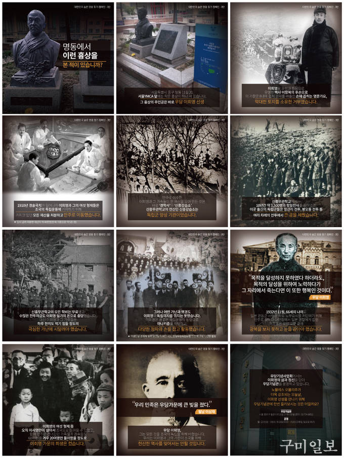 특히 서 교수는 "이회영 및 지난 1호 캠페인 주인공인 서울역 앞 동상의 강우규, 2호 캠페인 주인공인 명동입구 동상의 나석주 등을 모아 tvN '동네의 사생활'팀과 삼일절 특집 방송을 만들어 많은 시청자들에게 큰 호응을 얻었다"고 전했다.