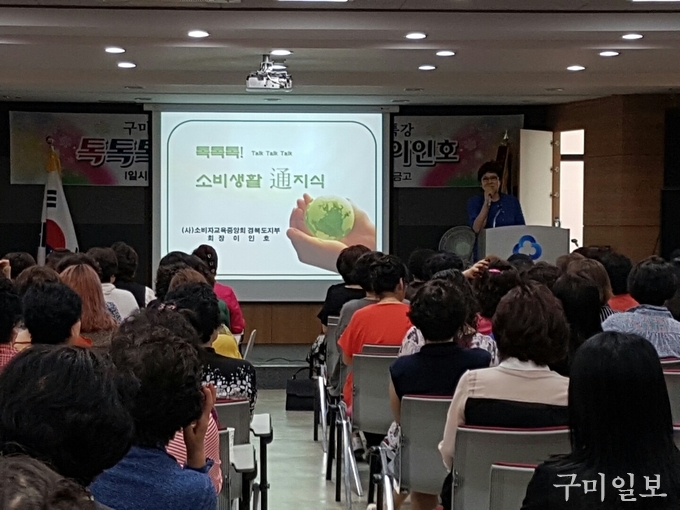 구미시여성단체협의회(회장 이재숙)는 지난 6월 26일(월) 형곡새마을금고 강당에서 여성단체 회원 150여명이 참석한 가운데 ‘톡톡톡! 소비생활 通지식’ 교육을 실시하고 여성폭력예방 캠페인을 전개했다.