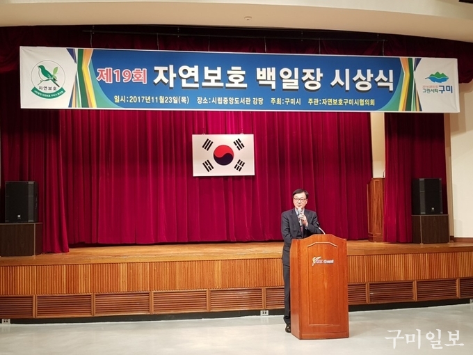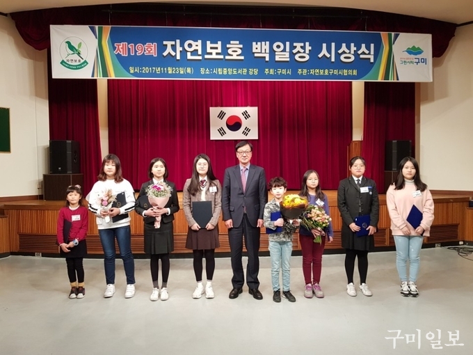 구미시(시장 남유진)와 자연보호구미시협의회(회장 김찬수)에서는 2017. 11. 23(목) 15시 구미시립중앙도서관 강당에서 수상자 및 가족 100여명이 참석한 가운데 제19회 자연보호백일장 시상식을 개최하였다.