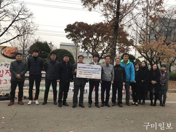구미시(시장 남유진)에서는 11. 24.(금) 15:00 (주)효성구미공장(총괄공장장 김철수) 사내 교육장에서 지난 23일(목) 직원 100여명이 참여하여 정성들여 버무린 김장김치 2,000포기(1,600만원 상당)를 사회복지시설과 어려운 저소득 가구를 위해 전달했다.