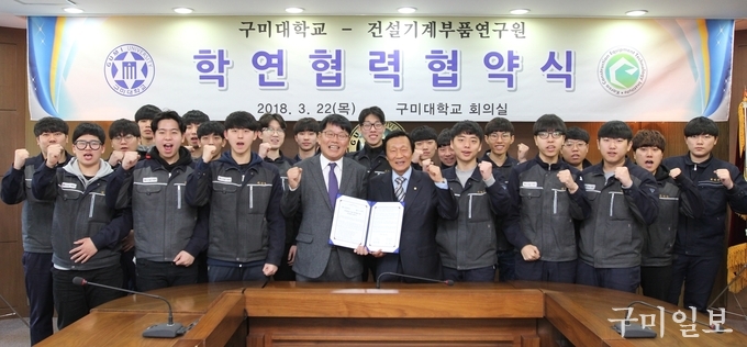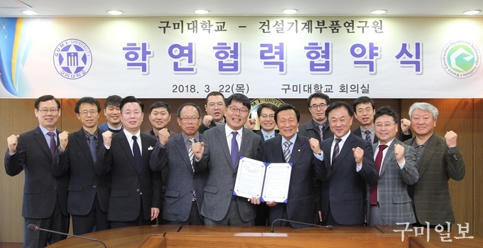 구미대는 3월 22일(목) 본관 3층 회의실에서 산업통상자원부 산하 연구기관인 건설기계부품연구원과 학·연 협약(MOU)를 체결했다고 밝혔다.