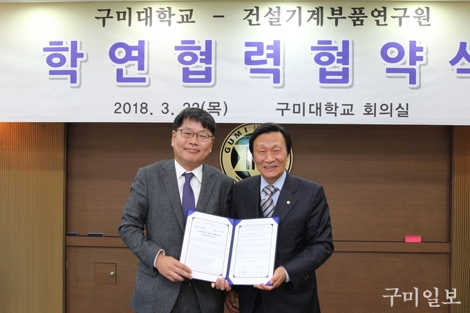 구미대학교(총장 정창주)와 건설기계부품연구원(원장 윤종구)이 공동 연구와 기술인력 양성을 위해 손을 잡았다.