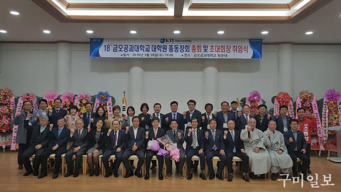 한편, 원종욱 초대 대학원총동창회장은 경북 포항이 고향으로 2015년 금오공대 산업대학원 경영학과를 졸업, 현재 대학원 박사과정에 재학 중이다. 선주로타리클럽 회장(역임), 민족통일협의회 구미시협의회장 등으로 활동하며 지역 발전을 위해 노력하고 있다.