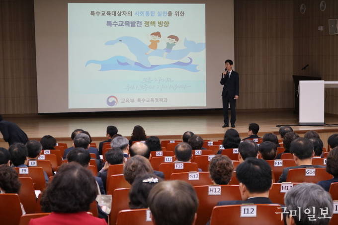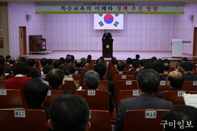 구미교육지원청(교육장 노승하)은 지난 4월 23일(월) 경상북도교육청연수원 인재관에서 경북서부권역(구미, 김천, 상주, 고령, 성주, 칠곡) 유·초·중·고·특수학교 교장 및 원장 등 관리자 300여명을 대상으로 장애학생 인권보호 및 통합교육 활성화를 위한 ‘2018 경북서부권역 특수교육 관리자 역량강화 연수회’를 성황리에 개최하였다.