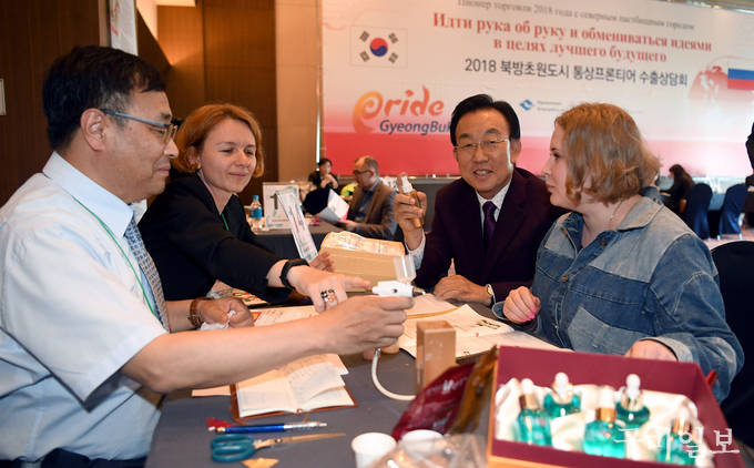 경상북도는 5월 28일(월) 러시아 블라디보스토크 현대호텔 다이아몬드홀(2F)에서 현지 바이어들과 1:1 수출상담회를 개최하여 1,500만 달러의 수출계약 및 상담성과를 거두었으며, 경북도-연해주간 경제교류회를 통한 정부의 신 북방정책을 지방정부 차원에서 새롭게 확대하는 기회를 가졌다고 밝혔다.