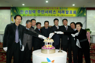 "구미시 주민서비스 700일의 기록"은 행정안전부의 지방자치단체 주민서비스 자원 발굴에 대한 공모사업에 최우수 사업으로 선정되어 상사업비를 받아 "08년 10월부터 준비해왔으며, 2007년 2월 주민생활지원과 조직개편 후 700여 일 동안의 민과 관의 협력과 활동 등을 기록한 책으로 ISBN인정 등록하여 전국지자체와 시민네트워크에 배부하여 주민서비스의 이정표로 활용될 예정이다. 이날 행사는 주민서비스 실천 동영상 상영과 사례발표회, 구미시립무용단의 단검무를 식전행사로 유공자 표창 및 기념식과 기념 떡케익 절단, 3부는 표경흠(웰펌대표) “주민서비스 어디로 갈 것인가” 특강으로 진행되었다. 사례발표회는 구미1대학 치위생과 김정숙 교수의 "2080치아사랑서비스"와 구미예술진흥원 김영래 이사의 "아동문화체험교실", 국민건강보험공단 이호수 팀장의 “찾아가는 주민서비스 한마당”에 대한 참여부터 활동내역을 발표하였다. 이날 행사에 참석한 민병조 부시장은 “주민서비스 전국 최고 지자체로 "구미시 주민서비스 700일의 기록"이 주민서비스의 단순한 기록을 넘어서 지침서로 활용되어 지길 바라며, 주민서비스 민·관 협력을 통하여 시민 누구도 소외됨 없이 다 함께 행복한 구미를 만드는데 앞장 서 줄 것“을 당부하였다. |