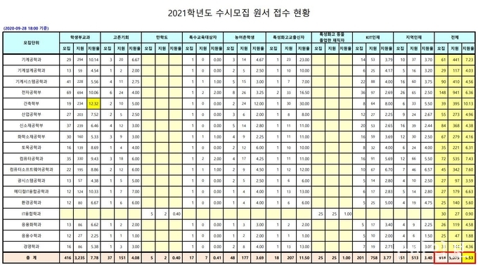 가장 높은 경쟁률을 나타낸 학과는 ‘학생부교과’의 ‘건축학부’로 12.32대 1의 경쟁률을 보였다.
