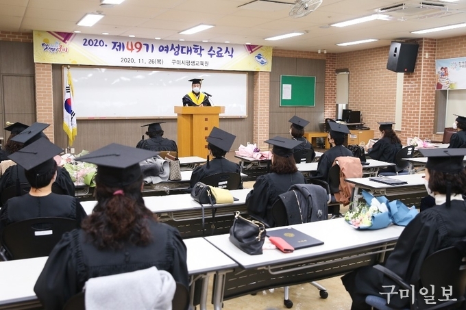 구미시(시장 장세용)는 11월 26일(목) 오전 10시 여성대학 수강생 등 60여명이 참석한 가운데 『2020년 제49기 구미시여성대학 수료식』을 구미시평생교육원에서 개최하였다.