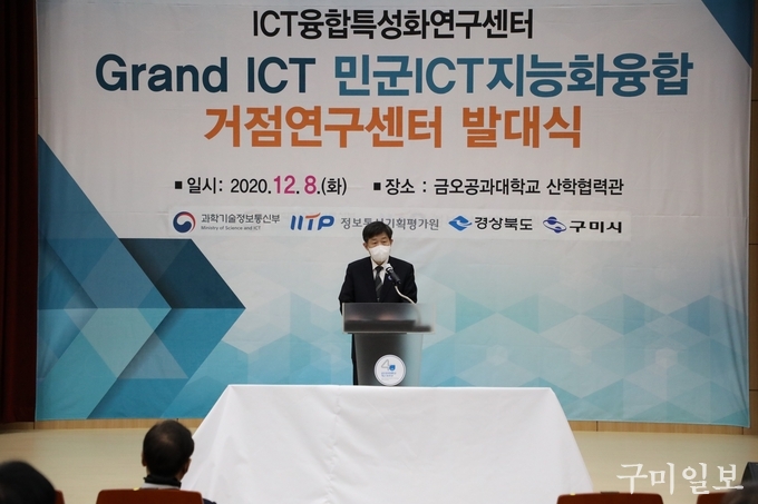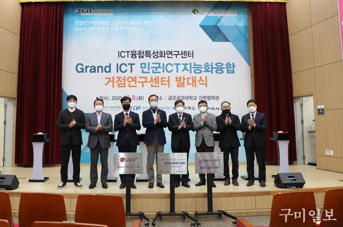 금오공과대학교(총장 이상철)가 지난 12월 8일(화) ‘Grand ICT 연구센터’사업 발대식을 가졌다. 금오공대 산학협력관에서 진행된 발대식에는 이상철 총장을 비롯해 장세용 구미시장, 김영식 국회의원, 김재상 구미시의회 의장, 조원석 LGU+ 전무 등이 참석했다. 구자근 국회의원과 장석영 과기정통부 2차관, 석제범 정보통신기획평가원장은 영상을 통해 사업 시작을 축하했다.