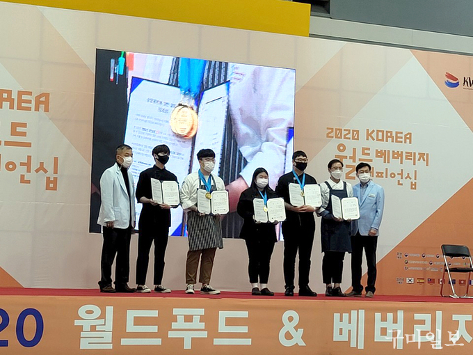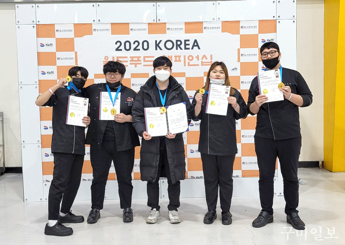 김천대학교(총장 윤옥현) 항공호텔조리학부 호텔조리전공 학생들이 지난 11월 12일(목)부터 11월 14일(토)까지 서울 양재동 aT센터 제1전시장에서 개최된 “2020 KOREA 월드푸드챔피언쉽”경연대회에서 라이브 5인1조 팀이 참가하여 라이브단체부문 금상과 한국외식경영학회-장려상(남동균, 장진호, 김일엽, 이준우, 송희주)을 수상하는 쾌거를 거두었다고 12월 10일(목) 밝혔다.