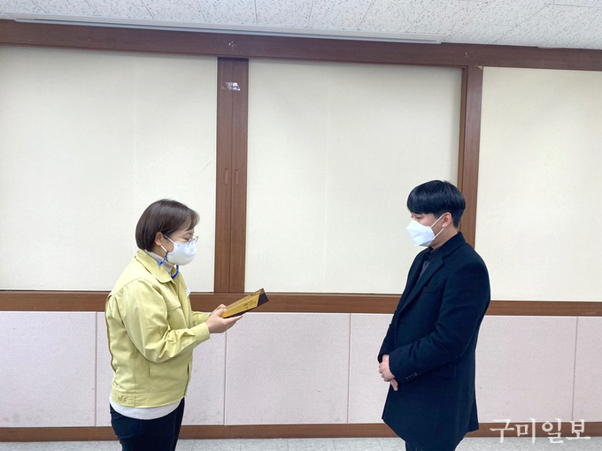 김천대학교(총장 윤옥현) 산학협력단은 2020년 김천시 지역경제 활성화에 기여한 공로로 12월 31일(목) 김천시(시장 김충섭) 유공자 표창을 받았다. 김천시장 표창은 김천대학교 산학협력단 이지훈 산학협력단 교직원이 수여받았다.