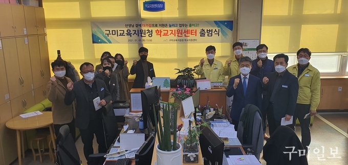 경상북도구미교육지원청(교육장 신동식)은 2021년 1월 5일(화) 오후 3시 신동식 교육장을 비롯한 각 과별 과장, 교육지원과 가족들이 참석한 가운데 ‘선생님을 아이들 곁으로’ 실현을 위한 다가감 비전의 학교지원센터 첫 발걸음을 힘차게 내딛었다.