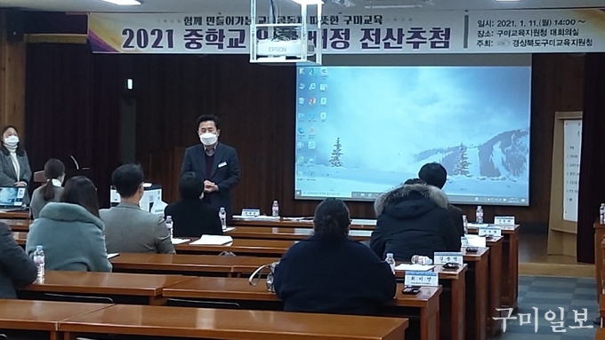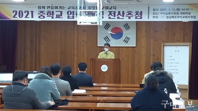 구미교육지원청(교육장 신동식)은 지난 1월 11일(월) 오후 2시, 4층 대회의실에서 2021학년도 중학교 입학 예정자 4,436명에 대한 중학교 입학 배정을 실시하였다.