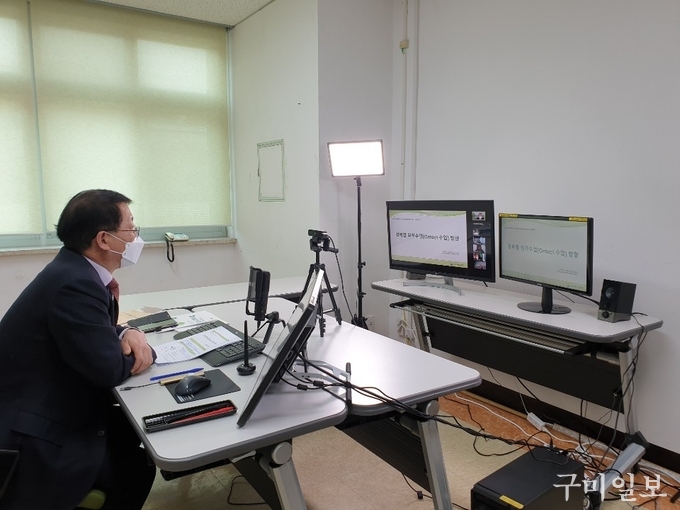 경상북도교육청 김희수 장학관의 “경북형 원격수업 방향”이란 주제강의를 시작으로 미디어리터러시, 포스트코로나시대와 미래교육, 다양한 블랜디드수업 사례와 실제 등 다양한 연수과목을 개설하여 연수에 참여한 선생님들의 미래형 교육과정으로 변화되는 시기의 원격수업과 등교수업을 위한 초등교원의 전문성 신장에 기여하였다.