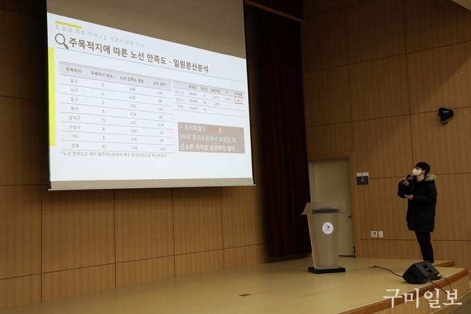 통학버스 담당 업무를 맡고 있는 학생처 최호영 주무관은 “대학 통학버스에 대한 질 개선 및 만족도 조사 결과 보고서를 통해 학생들과 운전자에 대한 다양한 의견을 확인하고 추후 노선조정 등 관련 사안에 참고하겠다”고 말했다.