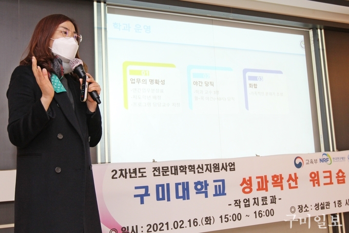 구미대는 지난해 학과별 효율적 운영 사례와 결과 분석을 통해 발표 학과를 선정했다. 헬기정비과, 피부뷰티맞춤화장품과, 물리치료과, 응급의료부사관과, 작업치료과, 비주얼게임컨텐츠스쿨 등 6개 학과이다.