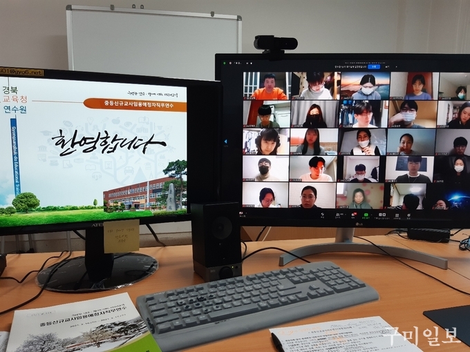 경상북도교육청연수원(원장 김옥례)은 본원 화상강의실에서 2월 16일(화)부터 2월 17일(수)까지 중등신규교사임용예정자 463명을 대상으로 새내기교사로서의 기초 소양 및 교육관 확립, 학교 현장에 대한 이해와 적응력 제고를 내용으로 쌍방향 원격연수를 운영하였다.