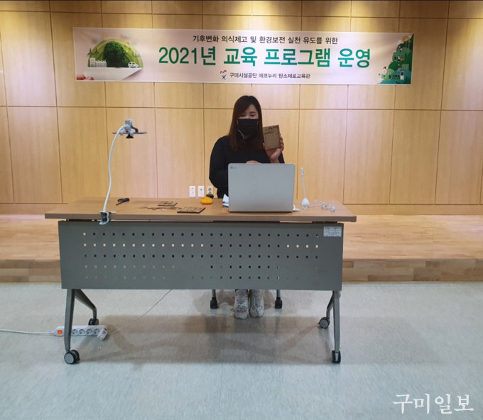 구미시설공단 에코누리 구미시 탄소제로교육관에서 언택트 시대를 극복하기 위해 공단 최초로 실시간 온라인 스트리밍을 활용해 지난 2월 16일(화)부터 2월 25일(목)까지 코로나19로부터 안전한 비대면 교육을 실시하였다.