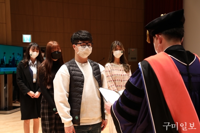 이번 입학식은 코로나19 방역 수칙 준수를 최우선으로 하여 총장과 주요보직자, 신입생 대표 등 최소 인원만 참석한 가운데 진행됐다. 금오공대 유튜브 채널을 통해 실시간으로 중계했으며, 신입생들에게는 사전 안내를 하여 입학식을 함께 지켜볼 수 있도록 했다. 또한 실시간 중계 화면 하단에 입학생들의 명단을 자막으로 송출했다.