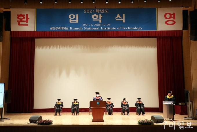 금오공과대학교(총장 이상철)가 2월 26일(금) 본관 대강당에서 ‘2021학년도 입학식’을 개최했다.