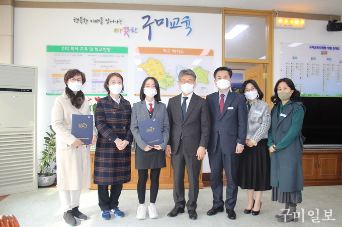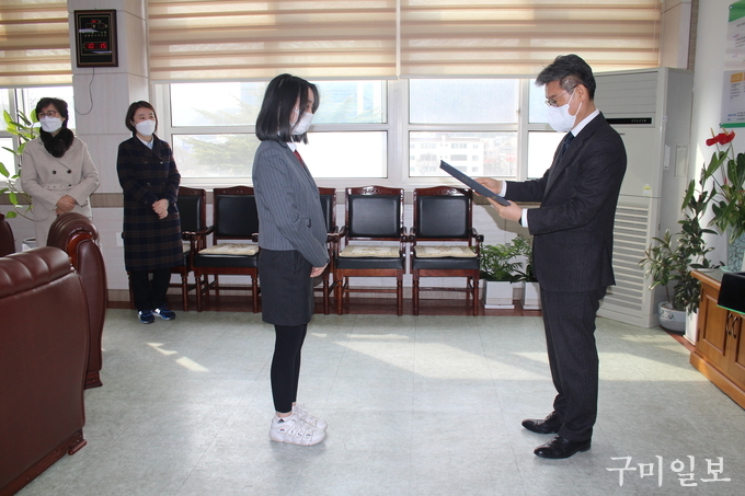 경상북도구미교육지원청 (교육장 신동식)은 2021년 3월 3일(수) 학업과 선행에 모범을 보인 학생을 대상으로 표창장과 장학금을 전달하였다.