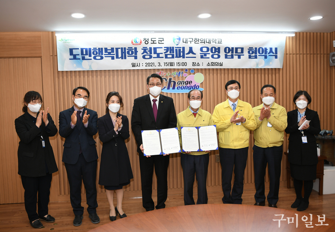 청도군(군수 이승율)은 지난 3월 15일(월) 대구한의대학교와 도민행복대학 청도캠퍼스 운영을 위한 협약식을 가졌다.