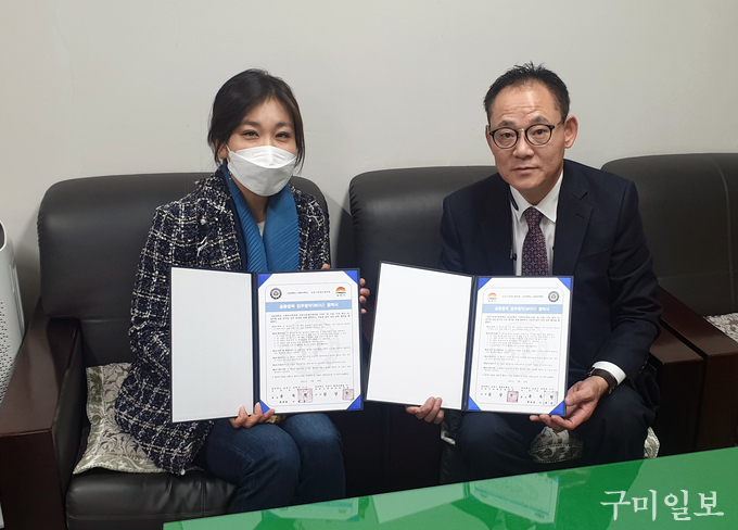 김천대학교(총장 윤옥현) 사회복지전공(주임교수 이예종)은 지난 3월 23일(화) 김천시장애인체육회(회장 김상돈)와 업무협약을 체결했다. 이날 협약식에는 김천시장애인권익협회 김천시지회 임이분 사무국장도 함께 참석했다.