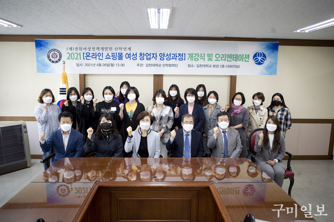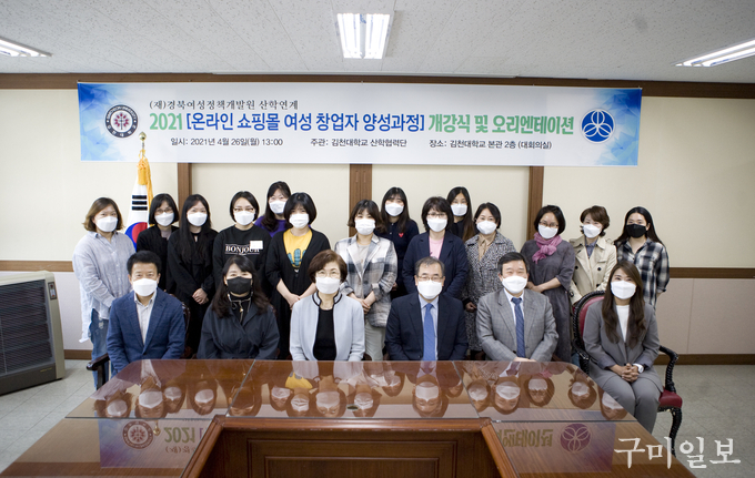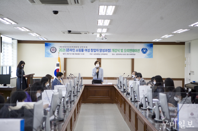 김천대학교(총장 윤옥현) 산학협력단(단장 백열선)은 지난 4월 26일(월) 오후 1시 김천대 대회의실에서 대학교수, 관계자 및 교육생이 참석한 가운데 ’2021년 여성일자리본부 산학연계 온라인 쇼핑몰 여성창업자 양성과정 개강식 및 오리엔테이션‘을 개최했다.