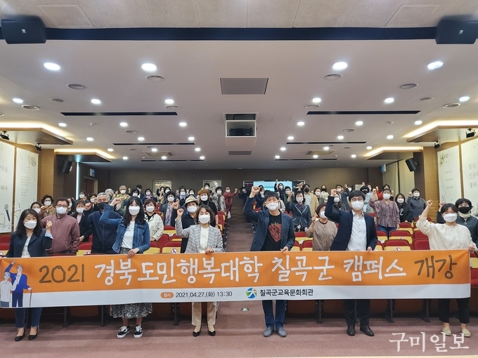 칠곡군(군수 백선기)은 지난 4월 27일(화) 칠곡군교육문화회관 인문학홀에서 60여 명의 입학생이 참가한 가운데 ‘2021년 경북도민행복대학 칠곡군캠퍼스’ 입학식을 성황리에 개최했다.