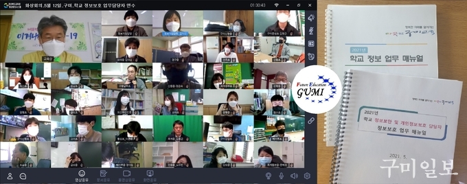 경상북도구미교육지원청(교육장 신동식)은 5월 12일(수) 관내 단설유ㆍ초ㆍ중학교 정보업무 담당교사 82명을 대상으로 코로나19를 감안하여 원격화상으로 연수를 실시하였다.