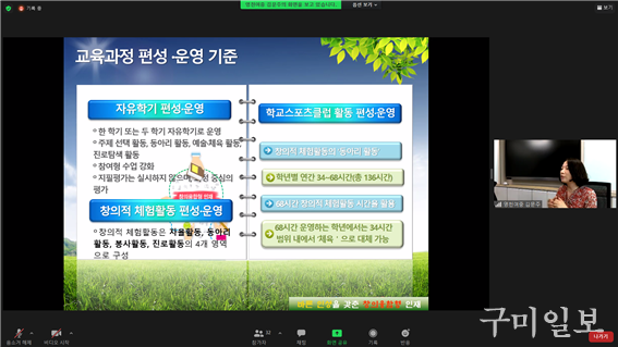 경상북도구미교육지원청(교육장 신동식)은 5월 21일(금) 오후 1시 30분부터 컨설팅실에서 구미 지역 중학교 자유학기제 업무담당교사 28명을 대상으로 자유학기제 쌍방항 원격 연수를 실시하였다.