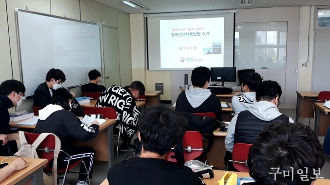 해양수산부 국립해양측위정보원(원장 이종철)은 포스트 코로나19 시대의 일자리 전환기를 맞이하여 지난 5월 18일(화)과 5월 26일(수) 한국폴리텍대학 대구, 남대구, 구미캠퍼스 스마트전자과 및 포항선린대학교 스마트전기에너지과 학생 80여명을 대상으로 찾아가는 해양수산 기술직공무원 진로특강을 실시했다고 밝혔다.