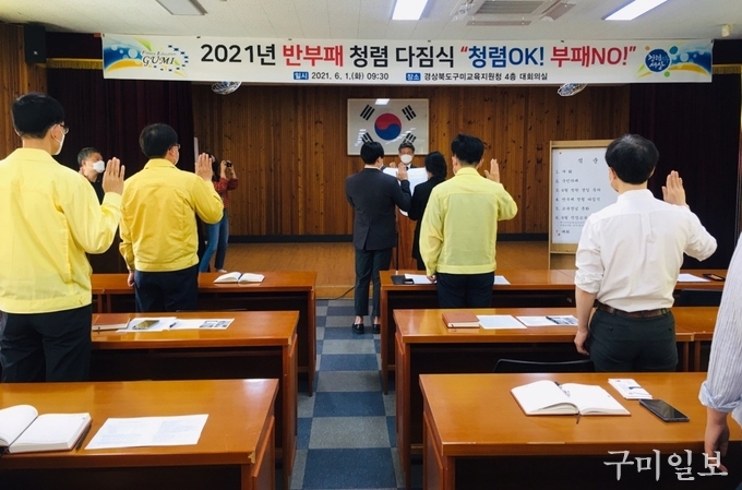 경상북도구미교육지원청(교육장 신동식)은 6월 1일(화) 구미교육지원청 대회의실에서 ‘따뜻한 구미교육’ 구현을 위한 2021년 반부패 청렴 다짐식을 개최하였다.