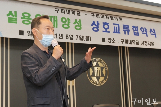 구미대 성실관 시청각홀에서 열린 협약식에는 오지민 구미대 피부뷰티맞춤화장품과 학과장, 김헌준 구미이지함의원 대표원장을 비롯 학과 교수, 학생 등이 참석했다.