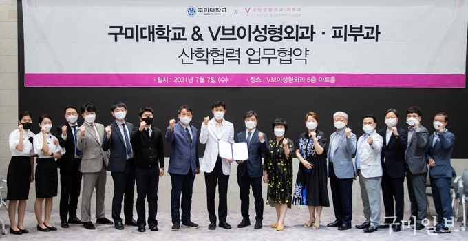 구미대학교(총장 정창주)는 7월 7일(목) 브이성형외과·피부과(원장 최원석)와 전문인력 양성 및 취업지원에 관한 고용예약형 협약(MOU)을 체결했다고 밝혔다.