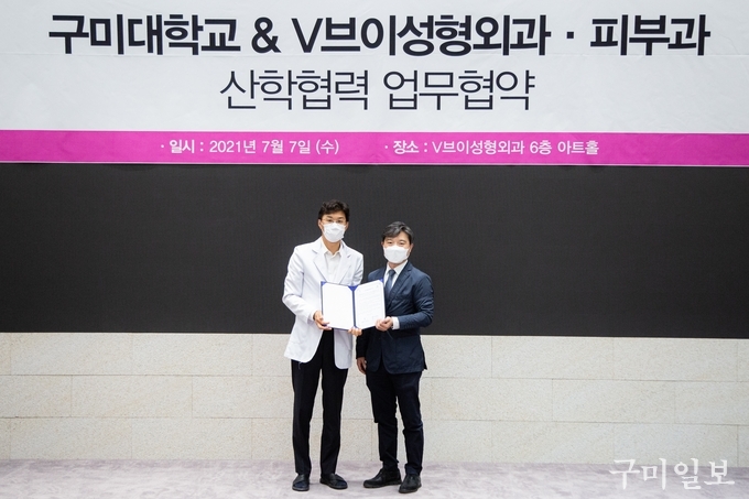 대구광역시 중구에 위치한 브이성형외과·피부과 6층(아트홀)에서 열린 협약식에는 이승환 구미대 인재개발처장과 최원석 원장 등 양측 실무자 대표가 참석했다.